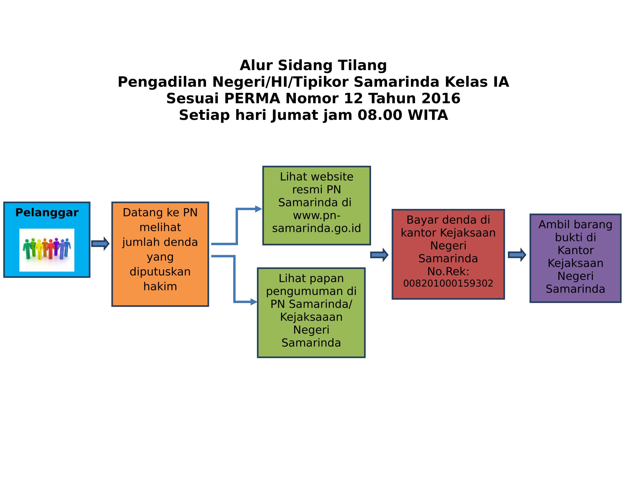 Sesuai dengan Perma 12 Tahun 2016 tentang tata cara penyelesaian perkara pelanggaran lalu lintas, maka dengan ini kami lampirkan data pelanggar tilang Kota Samarinda beserta jumlah denda yang harus dibayar.